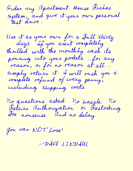 So, to help YOUR bank account (and MY ego), I'm offering "Apartment House Riches" for the very reasonable investment of just $995.